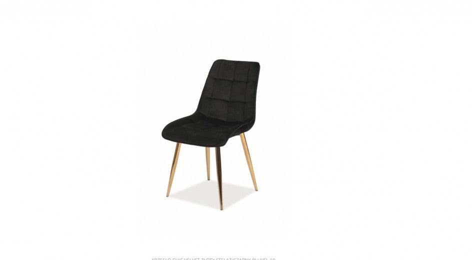 Chaise rembourrée en tissu, avec pieds en métal Chic Velours Noir / Or, l50xA58xH88 cm