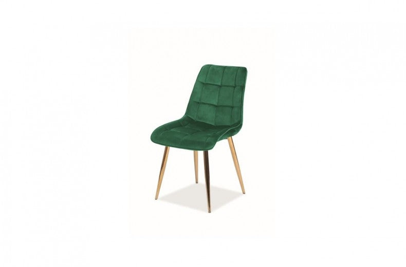 Chaise rembourrée en tissu, avec pieds en métal Chic Velours Vert Foncé / Or, l50xA58xH88 cm
