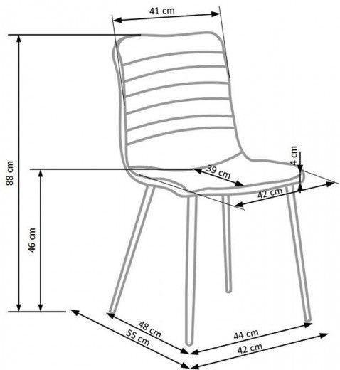 Chaise rembourrée en tissu, avec pieds en métal K251 Gris, l42xA55xH88 cm