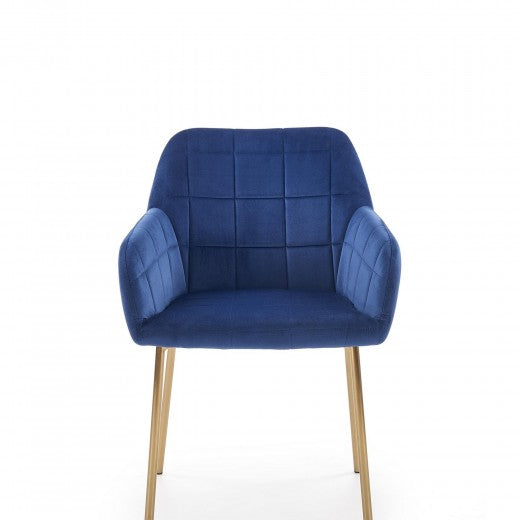 Chaise rembourrée en tissu, avec pieds en métal K306 Velours Bleu Foncé / Or, l58xA57xH80 cm