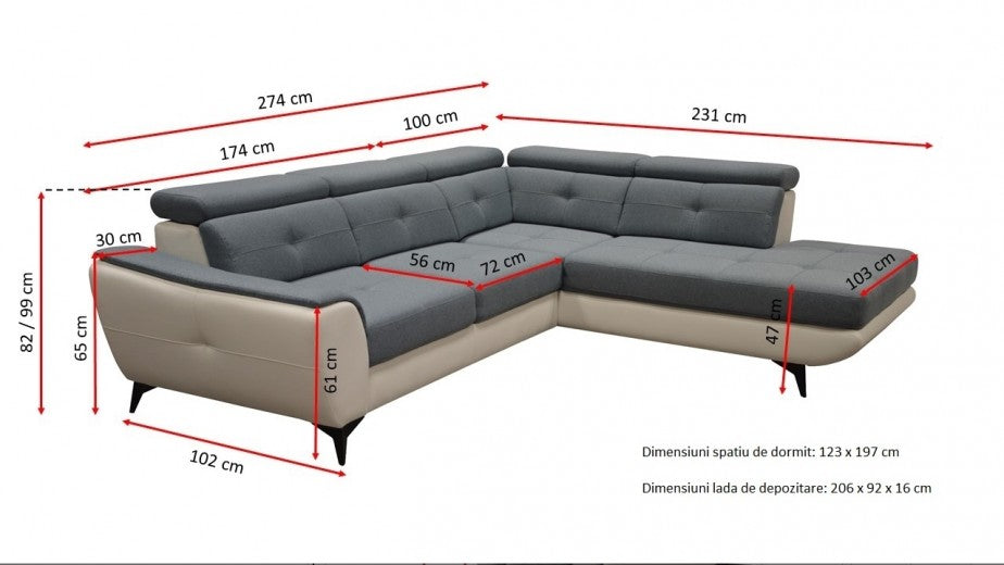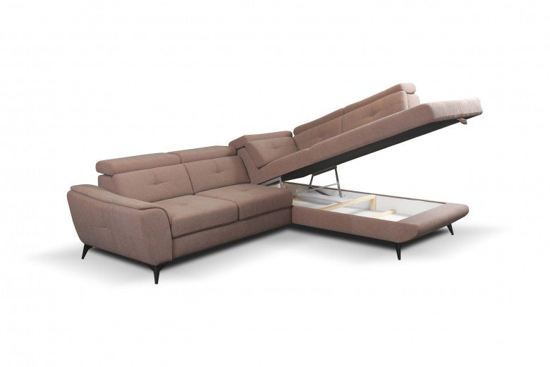 Canapé d'angle extensible avec coffre de rangement, avec bain de soleil à droite, recouvert de tissu fermé Sergio Salmon, l274xA231xH82 cm