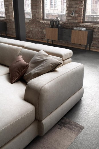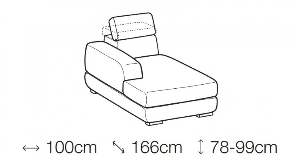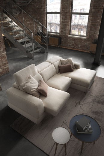Canapé d'angle fixe avec bain de soleil à droite, recouvert de tissu, Graffiti Beige, l273xA166xH78 cm