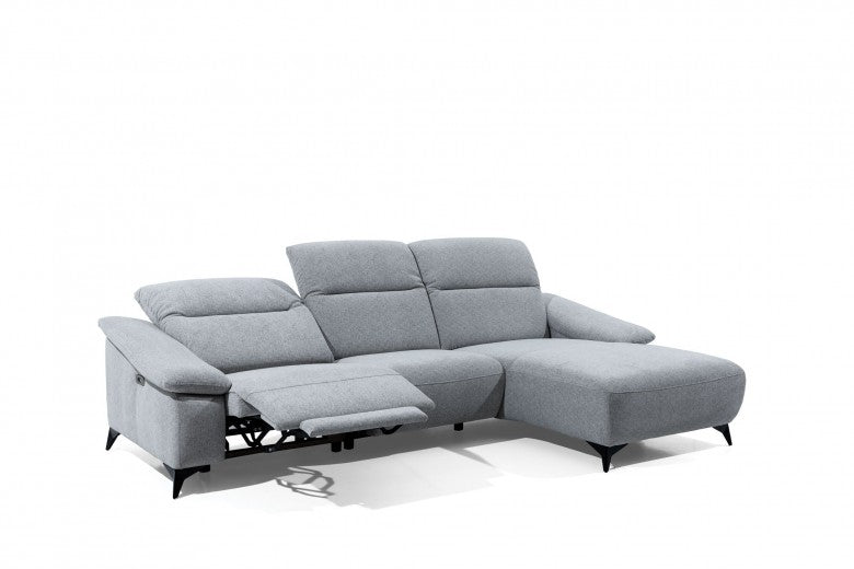 Canapé d'angle fixe avec mécanisme Relax, avec bain de soleil à droite, recouvert de tissu, Gappa Gris, l290xA170xH84 cm