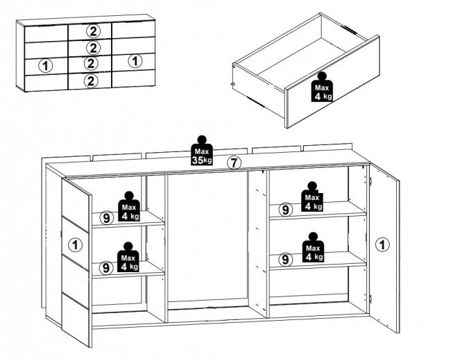 La meilleure façon d'éviter les accidents causés par la chute de meubles est de les coincer dans le mur. Par mesure de précaution supplémentaire pour vos enfants, nous vous recommandons d'acheter des fixations murales pour meubles si le produit acheté ne comprend pas déjà ces éléments.