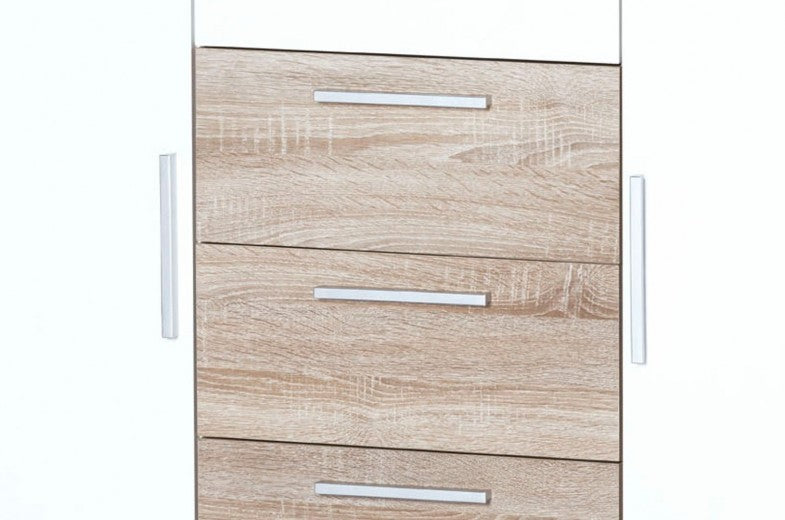 le meuble parfait pour une chambre à la fois moderne et fonctionnelle. La combinaison harmonieuse de couleurs subtiles de blanc et de chêne Sonoma accentuera le design unique de