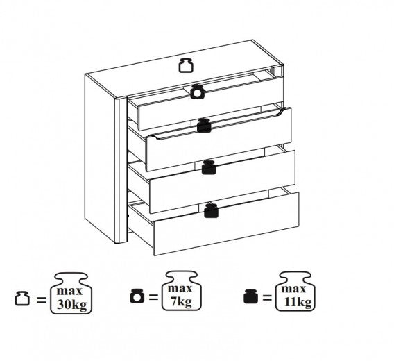 La commode Desjo 11 avec 4 tiroirs se distingue par son aspect esthétique et attrayant, qui s'intègre parfaitement dans n'importe quelle chambre.
