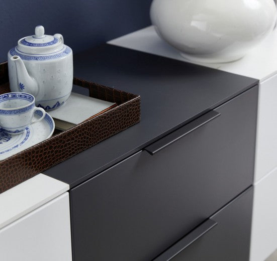 Commode en aggloméré et MDF avec 4 tiroirs et 2 portes, Madeline Blanc / Graphite, l180xA44xH90 cm