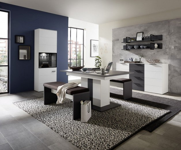 La collection Madeline est spécialement créée pour aménager un salon ou une salle à manger moderne et élégant, construit avec une attention particulière aux détails. La multitude de détails élégants associés aux tons blanc, chêne et gris foncé souligne le caractère original de cette collection.