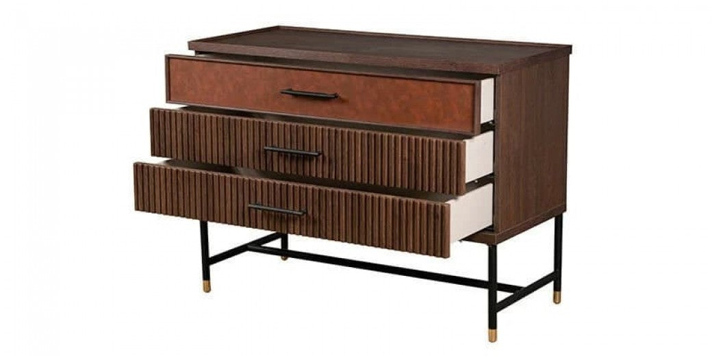 Commode en aggloméré et métal, avec 3 tiroirs Matilda Noyer / Noir, L109,5xP49,9xH81,9 cm