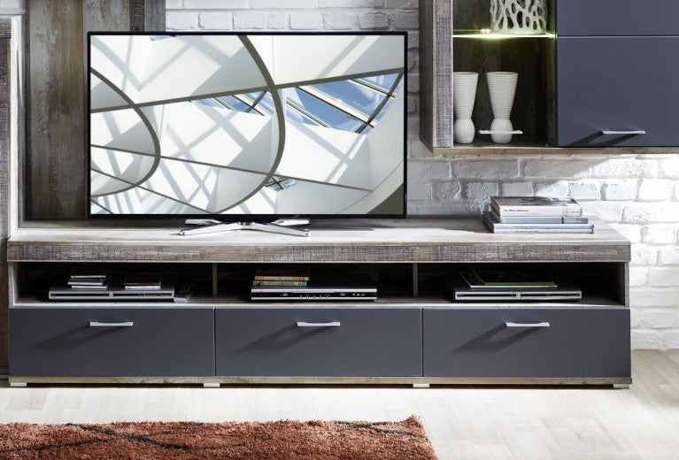 Commode en bois et MDF, avec 1 tiroir et 2 portes Krone Large Graphite / Natur, l210xA48xH50 cm