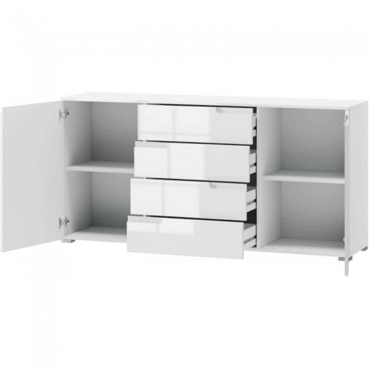 Commode en bois et MDF, avec 4 tiroirs et 2 portes Gabrielle 8 Blanc, l165xA40xH80 cm