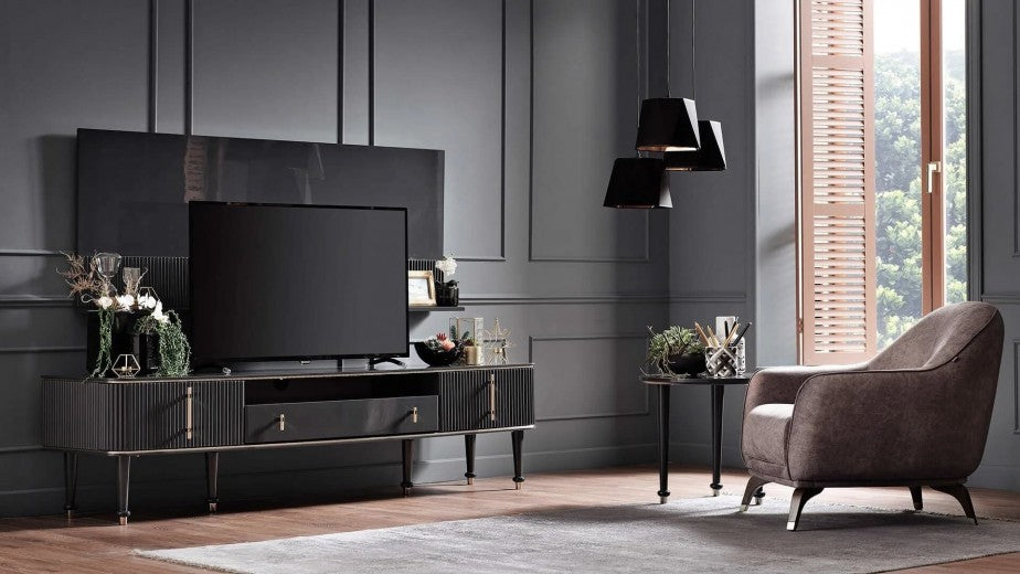 Commode en MDF et TV pâle, avec 1 tiroir et 3 portes Olivia Antracit, l220xA48xH50 cm