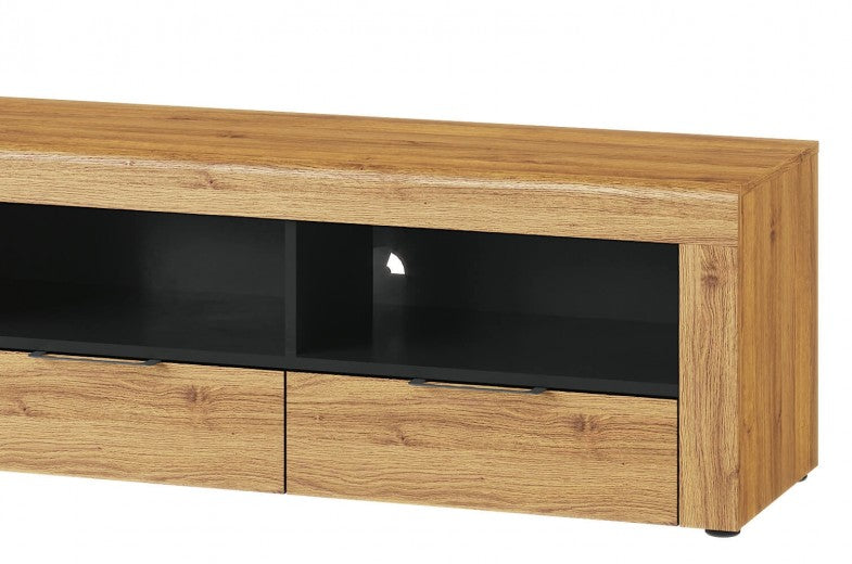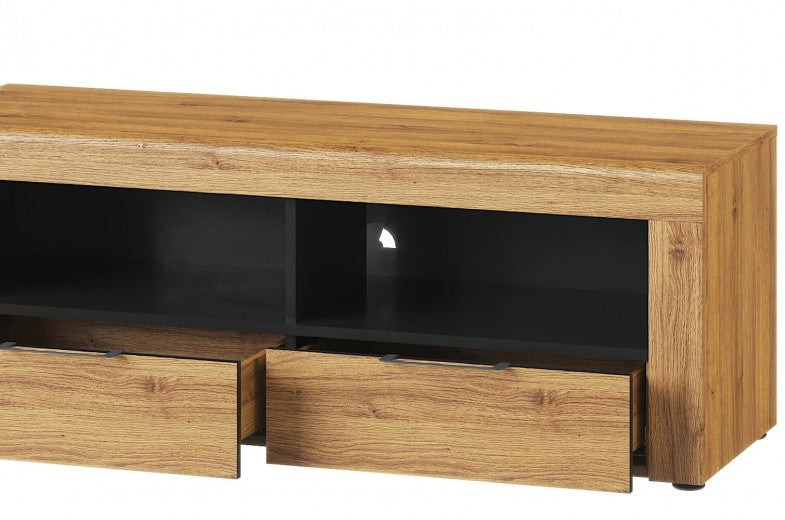 Commode TV avec 2 tiroirs Small Kama 24 Chêne / Noir, l119xA40xH44 cm