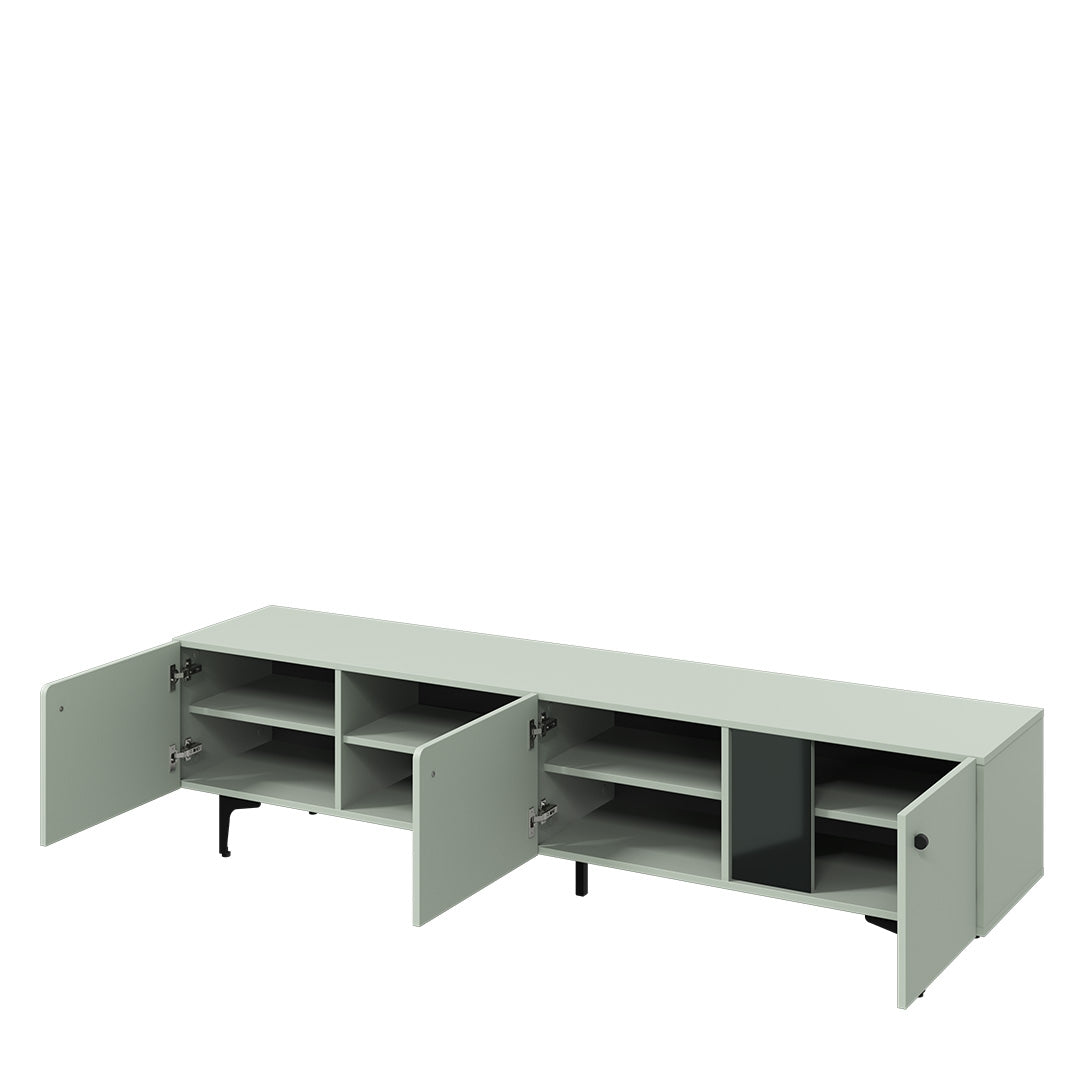 Commode TV en bois avec 3 portes, Colors Large CS 05, Vert Menthe / Noir, L200xW41xH50 cm