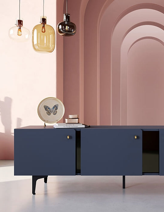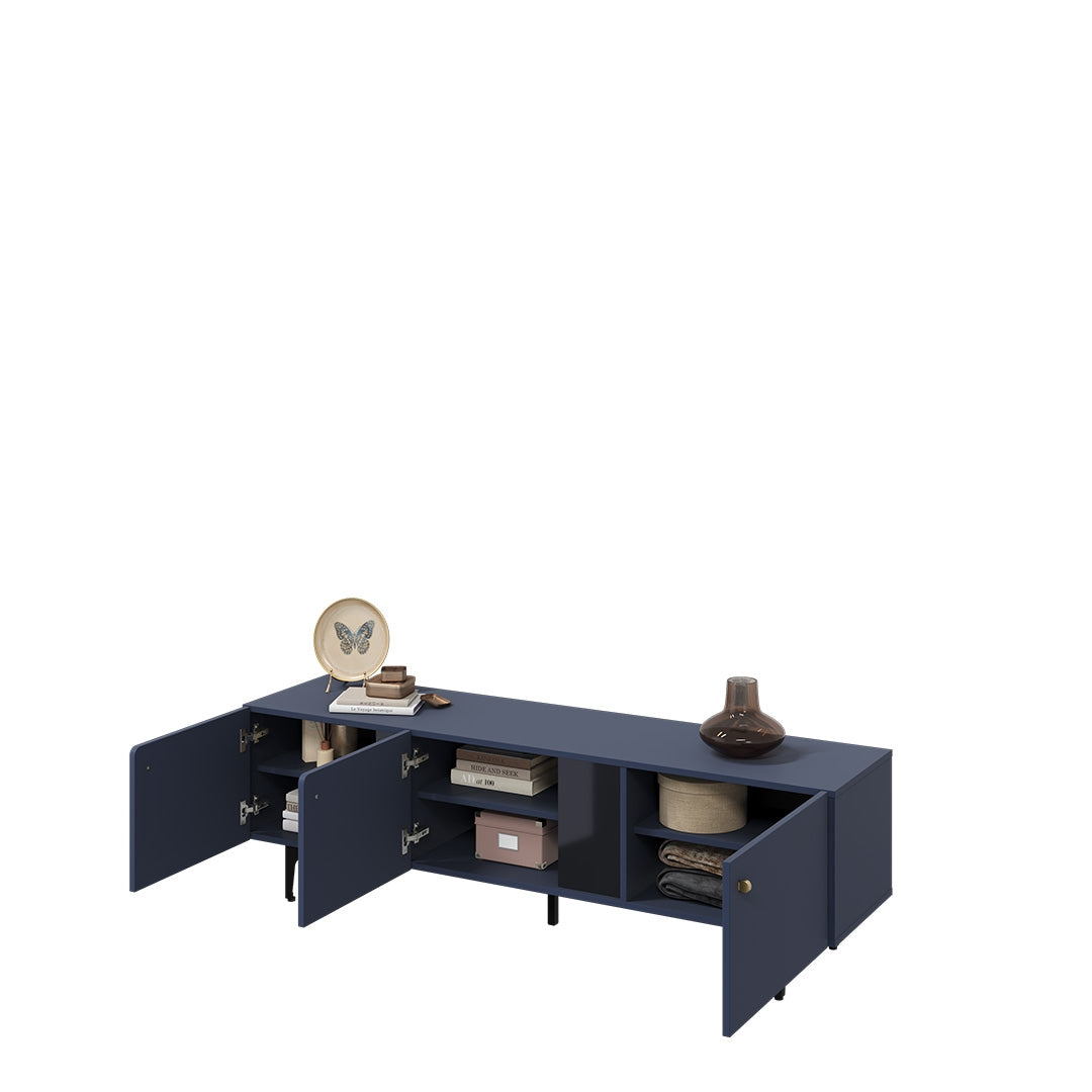 Commode TV en bois avec 3 portes, Colors Small CS 06, Bleu Marine Mat / Noir, L165xW41xH50 cm