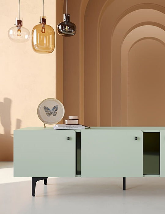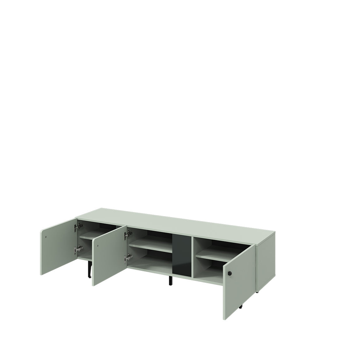 Commode TV en bois avec 3 portes, Colors Small CS 06, Vert Menthe / Noir, l165xW41xH50 cm