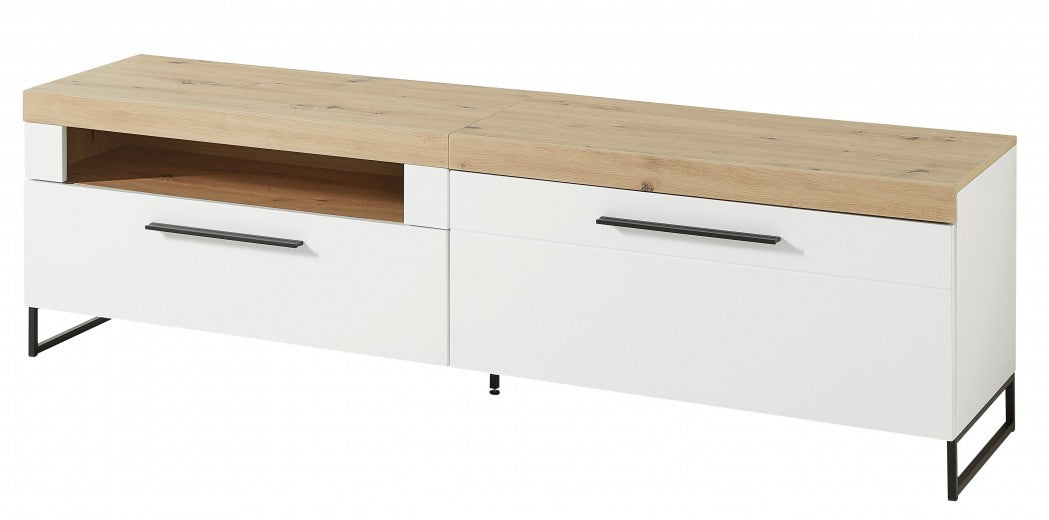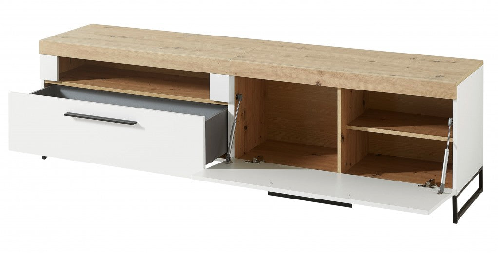 Commode TV en MDF, avec 1 tiroir et 1 porte Loftis Blanc / Chêne, l192xA44xH55 cm