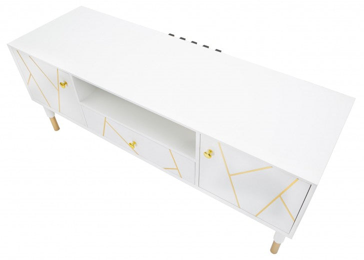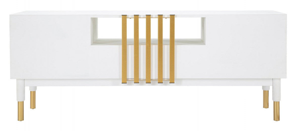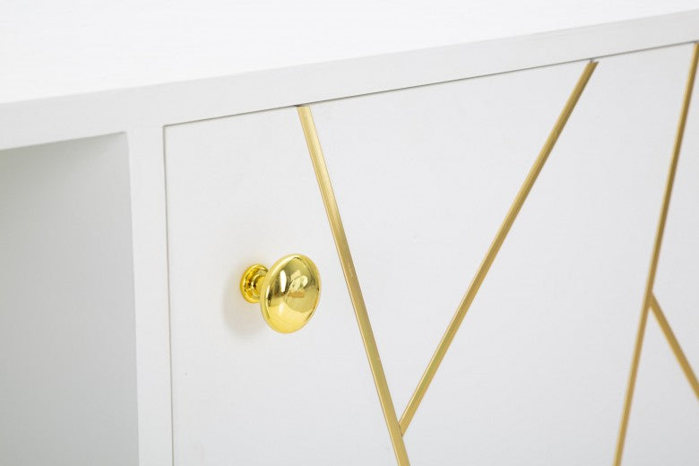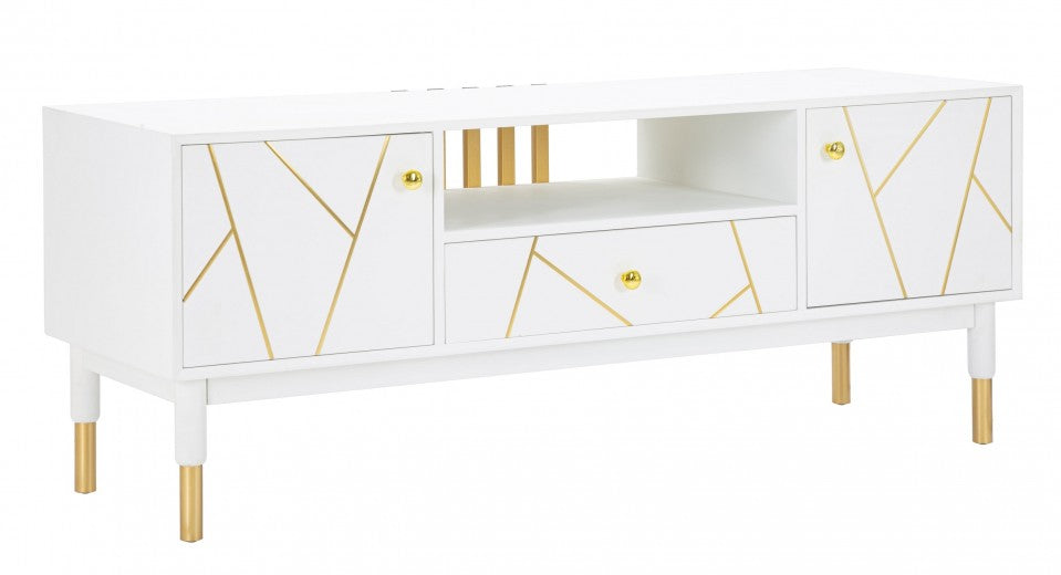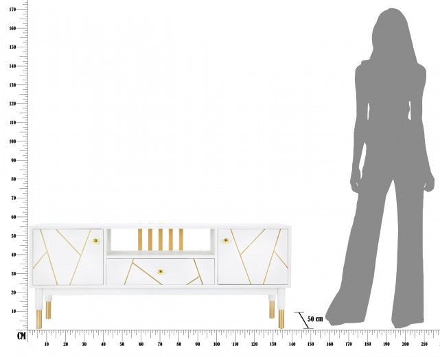 Commode TV en MDF et métal, avec 1 tiroir et 2 portes Luxy Blanc / Or, l140xA50xH55 cm
