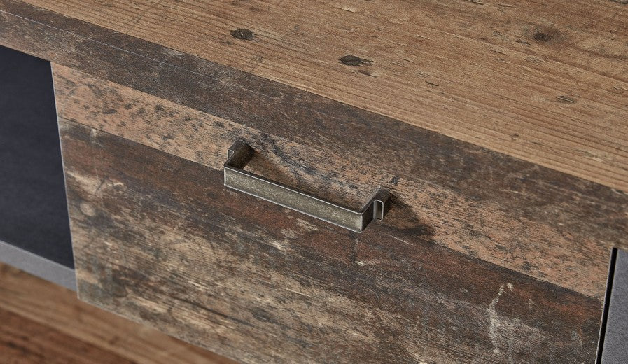 Commode TV en palette, avec 3 tiroirs et 1 porte Chelsea Naturel / Graphite, l154xA50xH62 cm