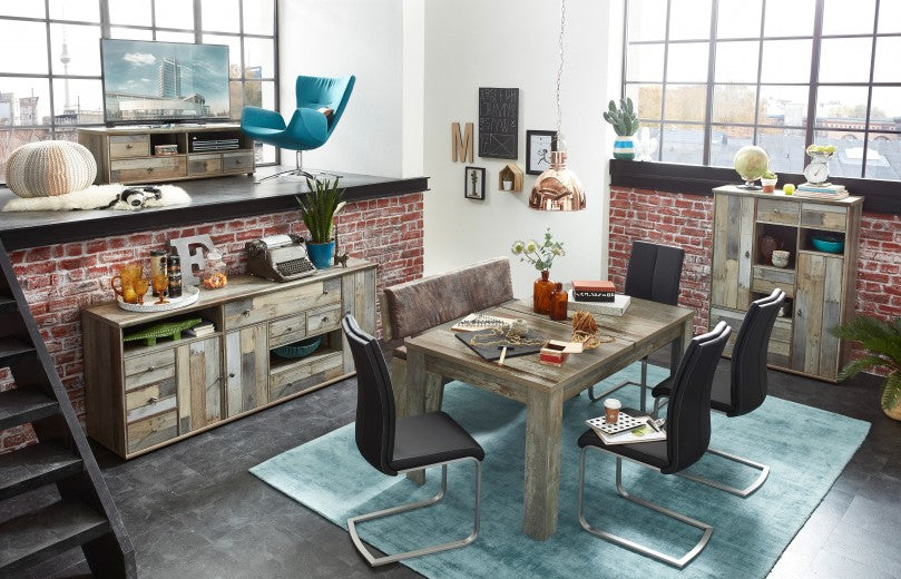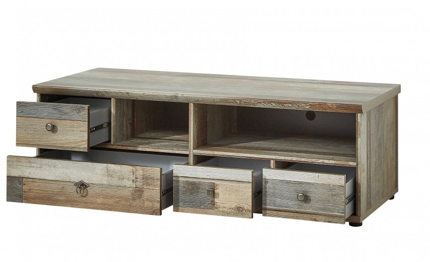 Commode TV en palette, avec 4 tiroirs Bazna Small Natur / Gris foncé, l130xA52xH43 cm