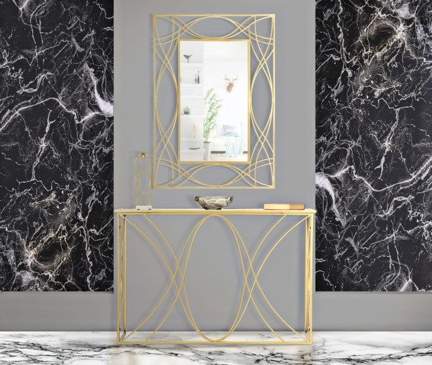 Console Exy Or métal et verre, l120xA40xH80 cm