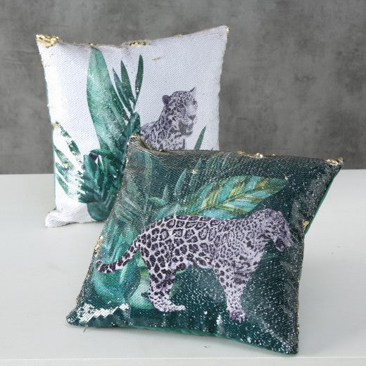 Coussin décoratif vert léopard, Modèles assortis, L40xl40 cm