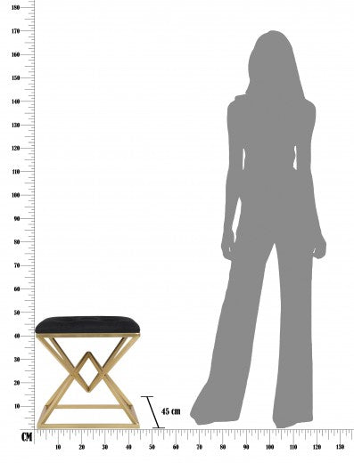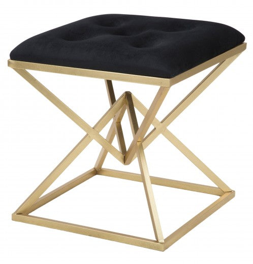 Tabouret rembourré avec pieds en tissu et métal Pyramid Noir / Doré, l45xA45xH48 cm