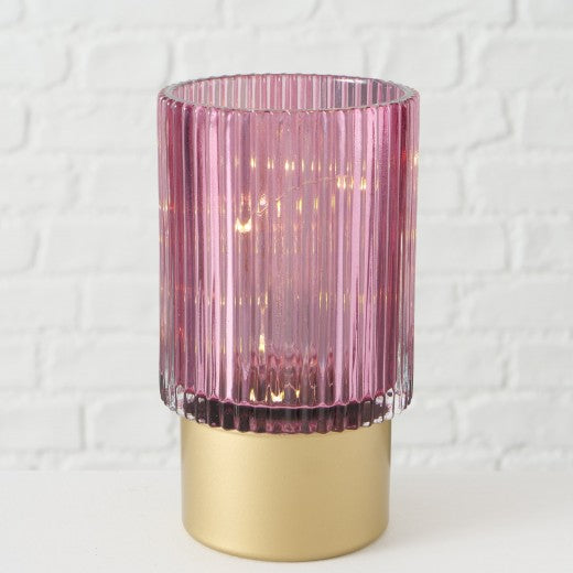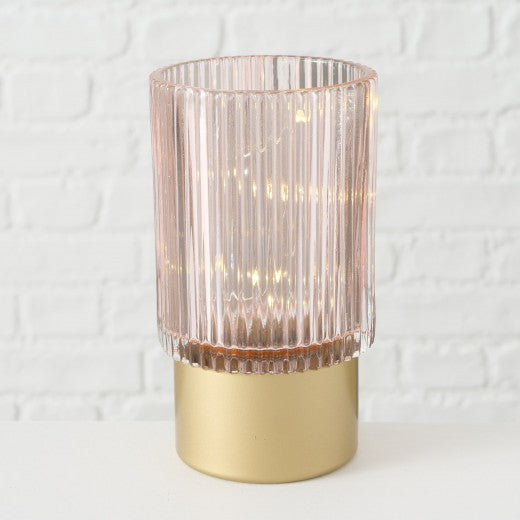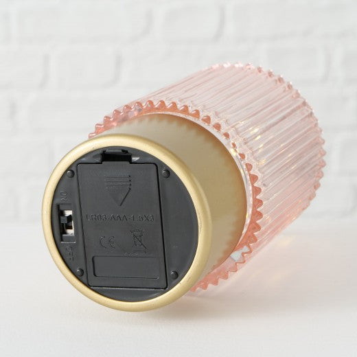Décoration Verre LED Apia Rose / Blanc, Motifs Assortis, Ø9xH15 cm