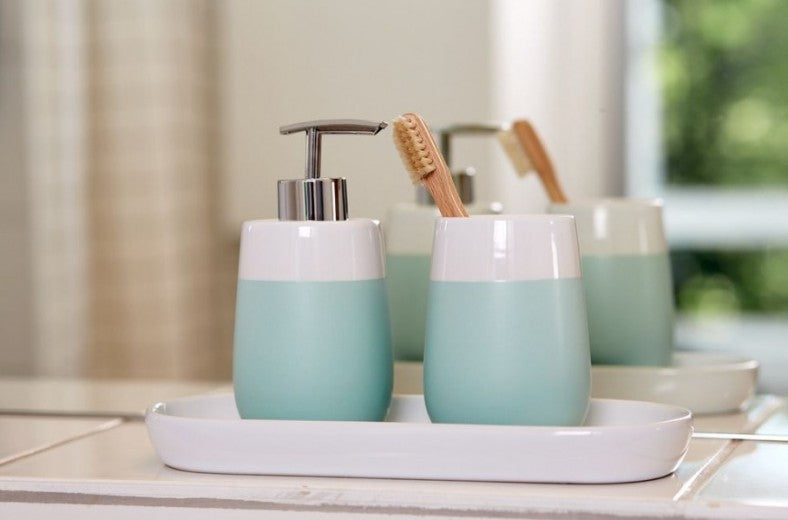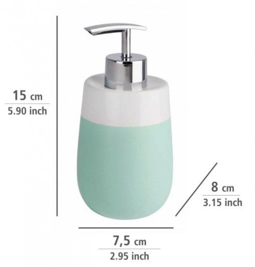 Distributeur de savon, céramique, Vert menthe / Blanc, Ø7,5xH15 cm