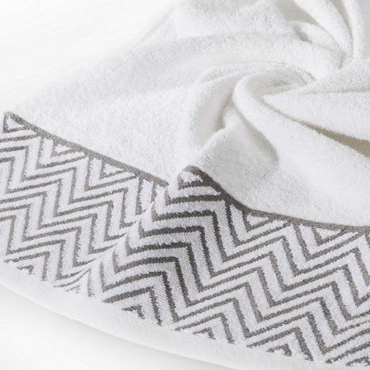 Les serviettes de bain Ziggy sont composées à 100 % de coton extrêmement doux avec une capacité de séchage très élevée. La bordure décorative avec des éléments géométriques donne ce charme particulier et une élégance parfaite.