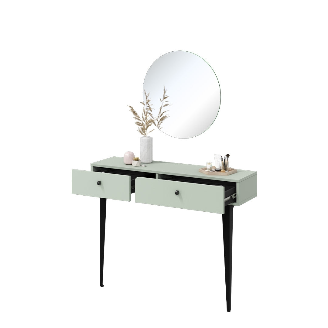 Ensemble console avec miroir, pâle et verre, Coloris CS 07-08, Vert Menthe / Noir, l105xW30xH80 cm