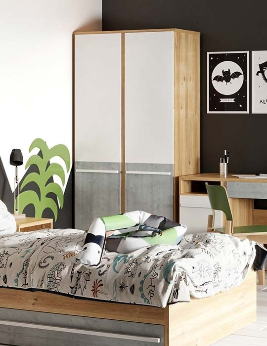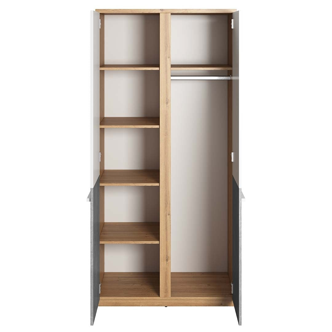 - 1 Armoire en bois à 2 portes, pour enfants et adolescents, Plano 02 Chêne / Gris / Blanc, largeur : 90 cm, profondeur : 51 cm, hauteur : 191 m, poids : 78 kg