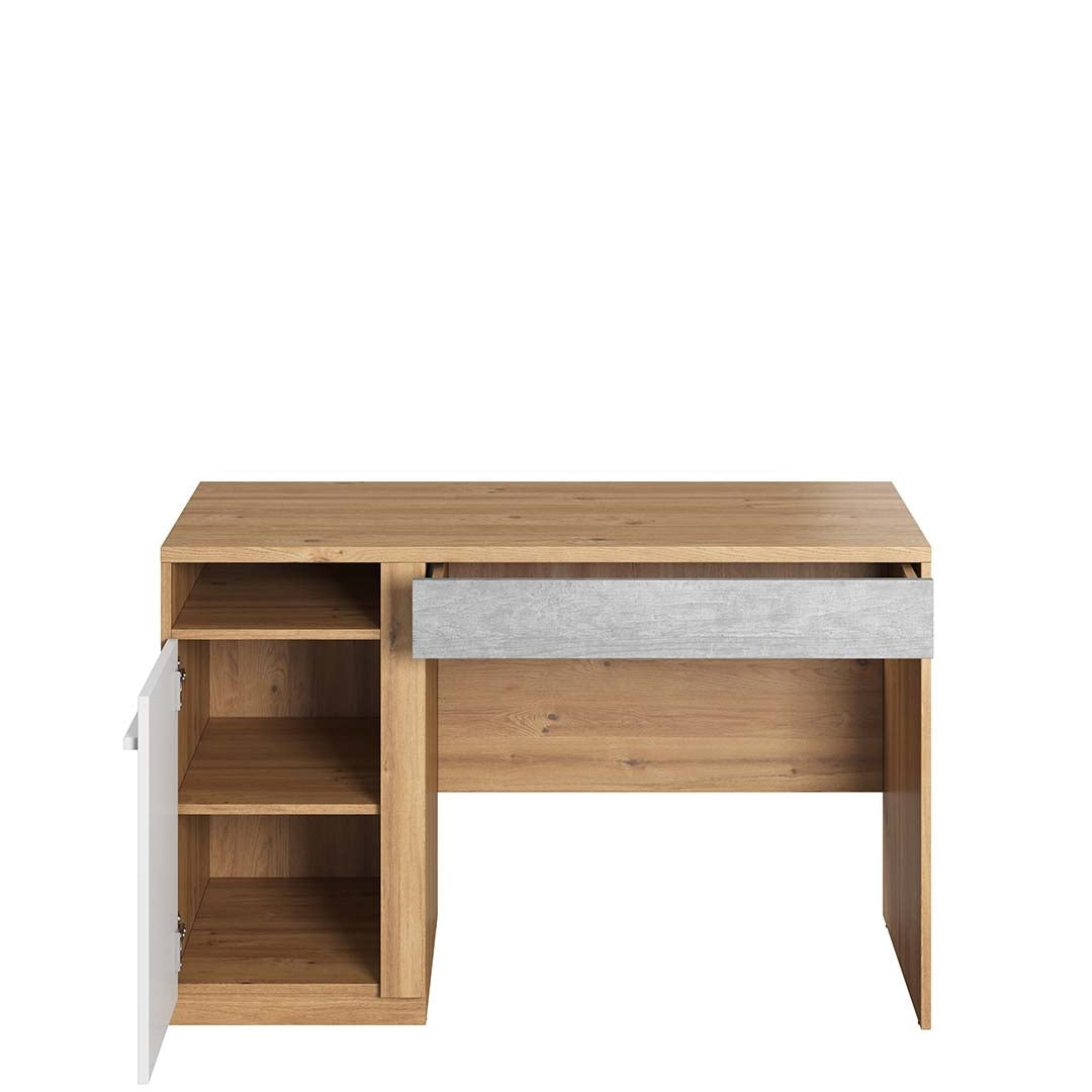 - 1 Bureau en bois clair, avec 1 tiroir et 1 porte, pour enfants et adolescents, Plano 06 Chêne / Gris / Blanc, longueur : 120 cm, largeur : 55 cm, hauteur : 76 cm, poids : 39 kg