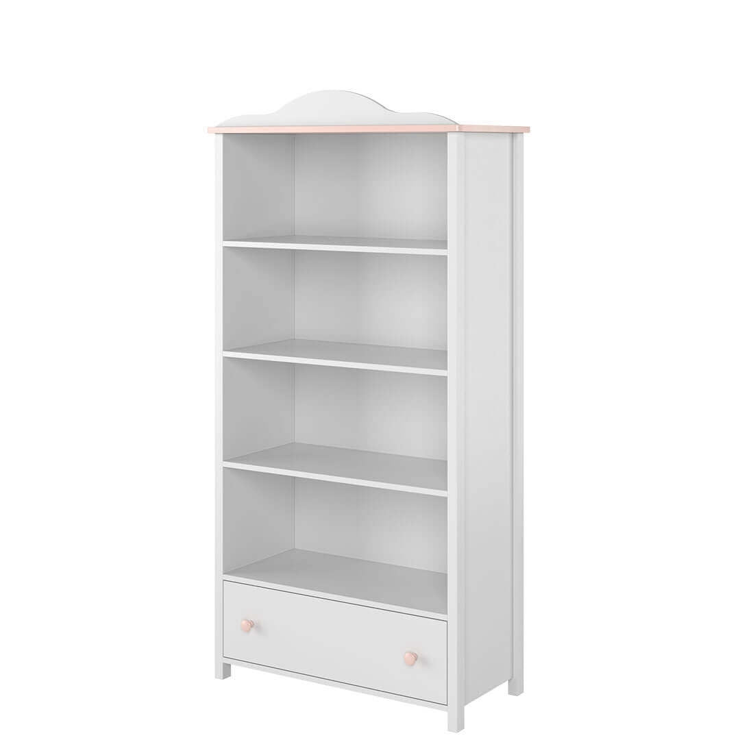 - 1 Bibliothèque en bois avec 1 tiroir, pour enfants et adolescents, Luna 02 Blanc / Rose, largeur : 85 cm, profondeur : 42 cm, hauteur : 171 cm, poids : 45 kg