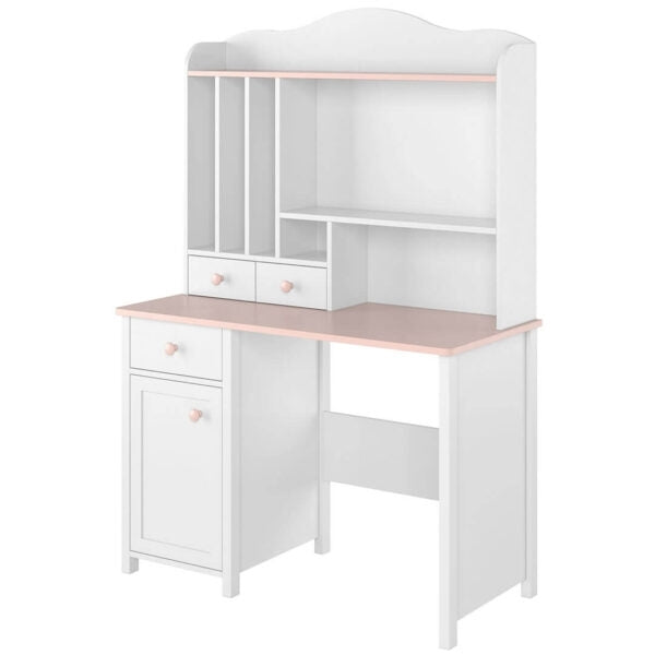 - 1 Table de bureau en bois, avec 1 tiroir et 1 porte, pour enfants et jeunes, Luna 03 Blanc/Rose, longueur : 110 cm, largeur : 52 cm, hauteur : 76 cm, poids : 32 kg