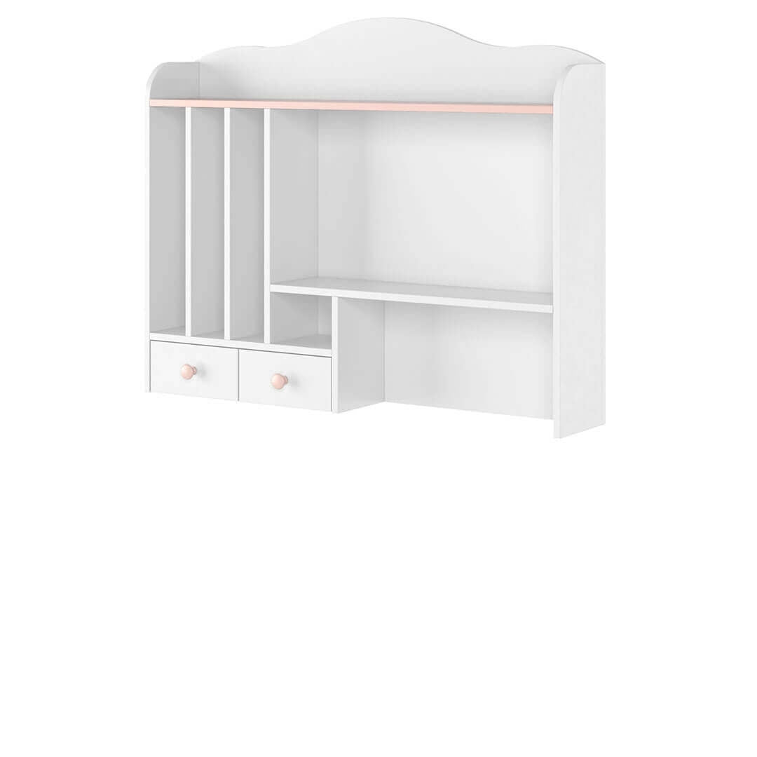 - 1 Bibliothèque suspendue en bois, avec 2 tiroirs, pour enfants et adolescents, Luna 04 Blanc / Rose, largeur : 107 cm, profondeur : 20 cm, hauteur : 85 cm, poids : 24 kg