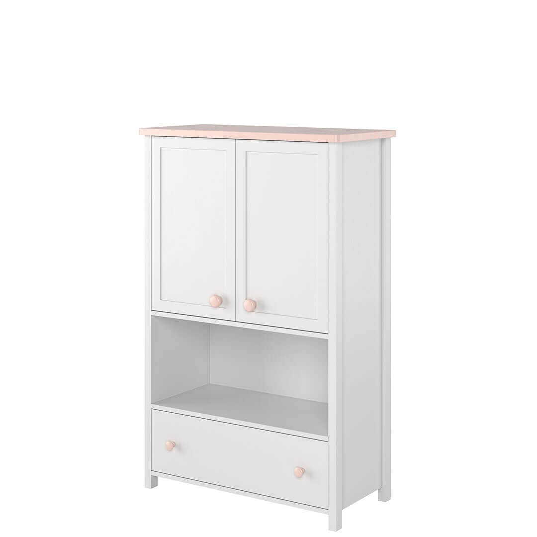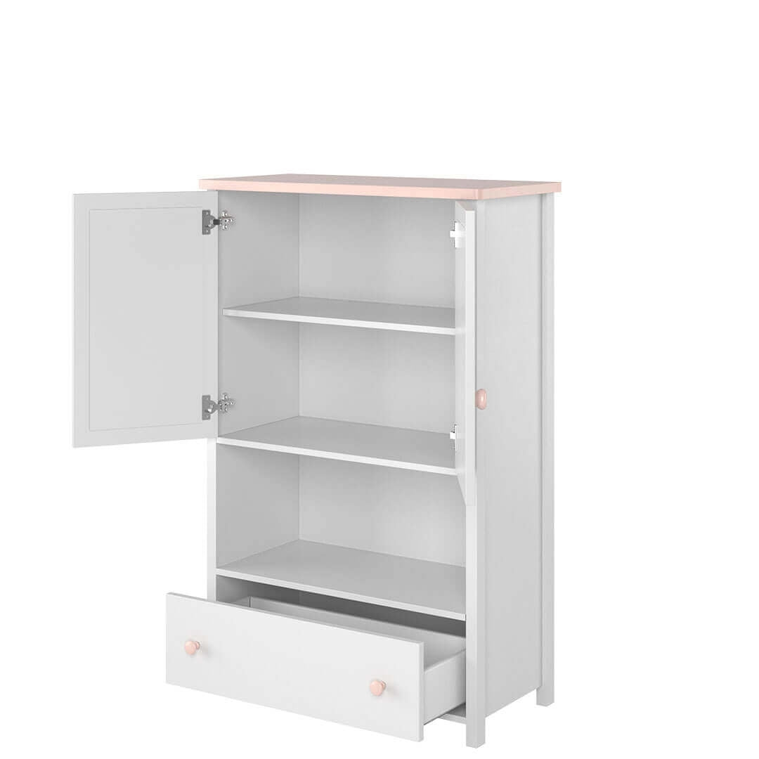 - 1 Petite armoire en bois, avec 2 portes et 1 tiroir pour enfants et adolescents, Luna 11 Blanc / Rose, largeur : 85 cm, profondeur : 42 cm, hauteur : 131 m, poids : 43 kg