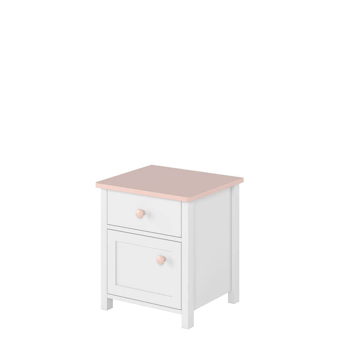 - 1 Table de chevet en bois, avec 1 porte et 1 tiroir, pour enfants et jeunes, Luna 07 Blanc/Rose, largeur : 45 cm, profondeur : 42 cm, hauteur : 51 cm, poids : 14 kg