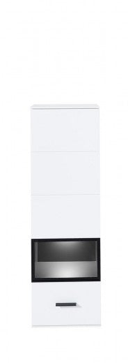- 2 x Vitrine suspendue en aggloméré et MDF avec 1 porte, Madeline Blanc / Graphite, dimensions : largeur : 40 cm, profondeur : 36 cm, hauteur : 125 cm, poids : 27 kg