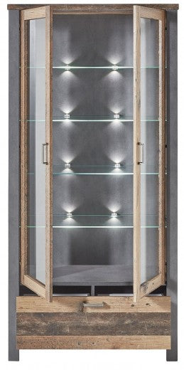 - 1 vitrine en aggloméré, avec 2 portes et 1 tiroir Chelsea, dimensions : largeur : 94 cm, profondeur : 40 cm, hauteur : 194 cm, poids : 87 kg