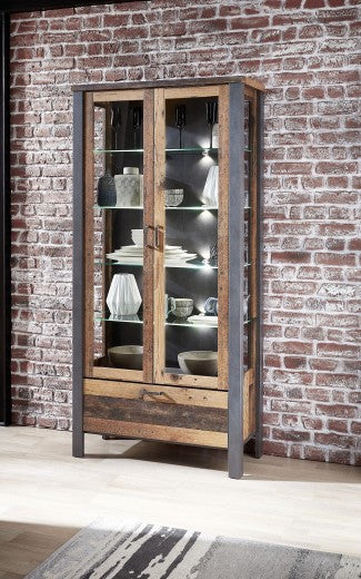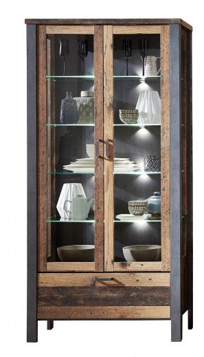 - 1 vitrine en aggloméré, avec 2 portes et 1 tiroir Chelsea, dimensions : largeur : 94 cm, profondeur : 40 cm, hauteur : 194 cm, poids : 87 kg