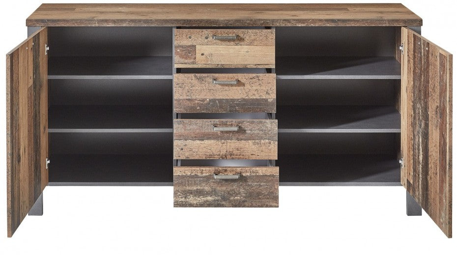 - 1 Commode, avec 4 tiroirs et 2 portes Chelsea, dimensions : largeur : 179 cm, profondeur : 44 cm, hauteur : 88 cm, poids : 85 kg