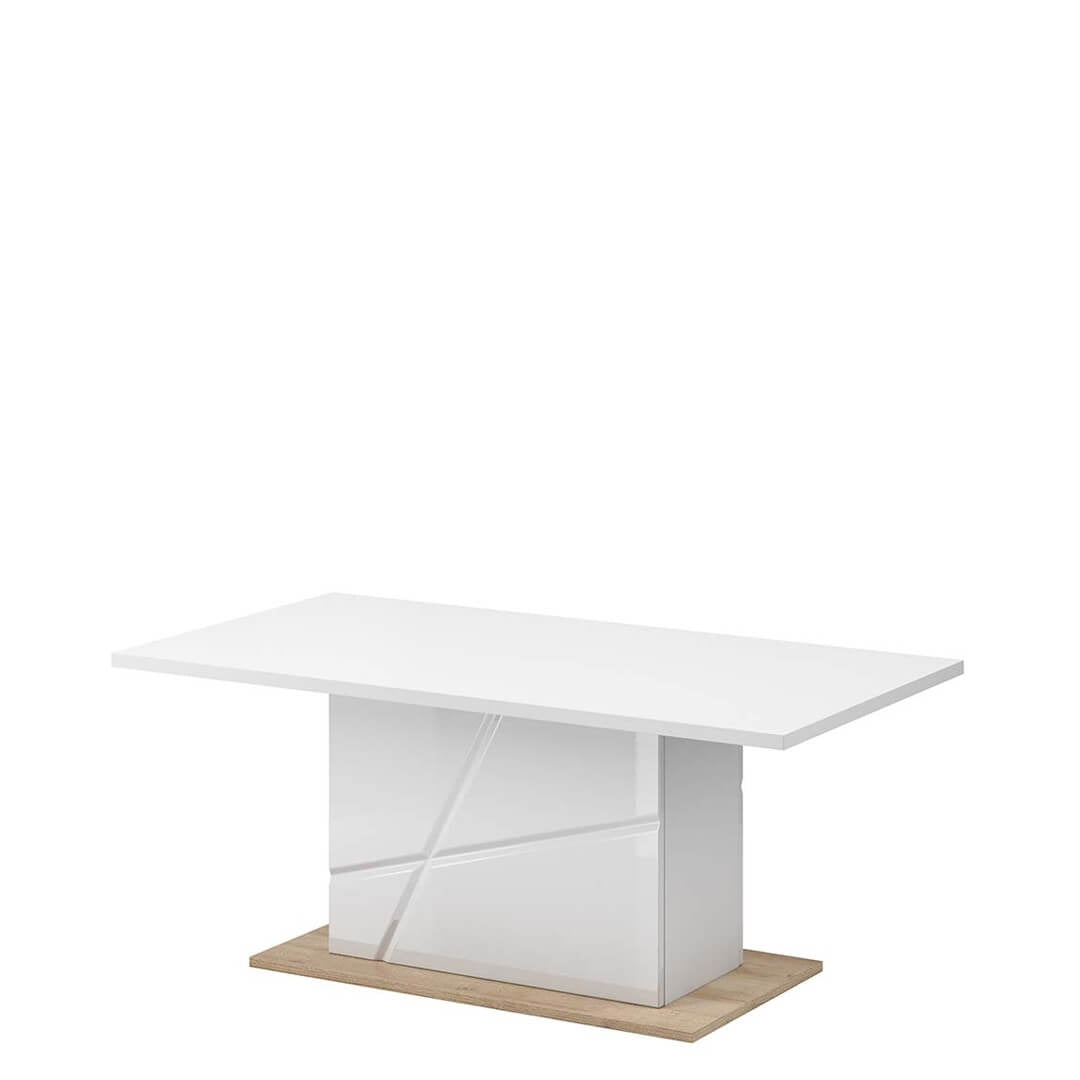 - 1 Table basse en Futura 09 Blanc / Chêne Riviera : longueur 115 cm, largeur : 65 cm, hauteur : 51 cm, poids : 25 kg