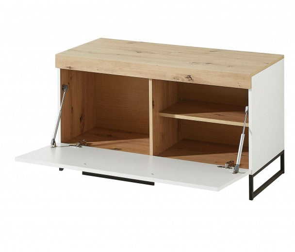- 1 meuble MDF avec 1 porte Loftis Blanc / Chêne, dimensions : largeur : 96 cm, profondeur : 44 cm, hauteur : 55 cm, poids : 25 kg