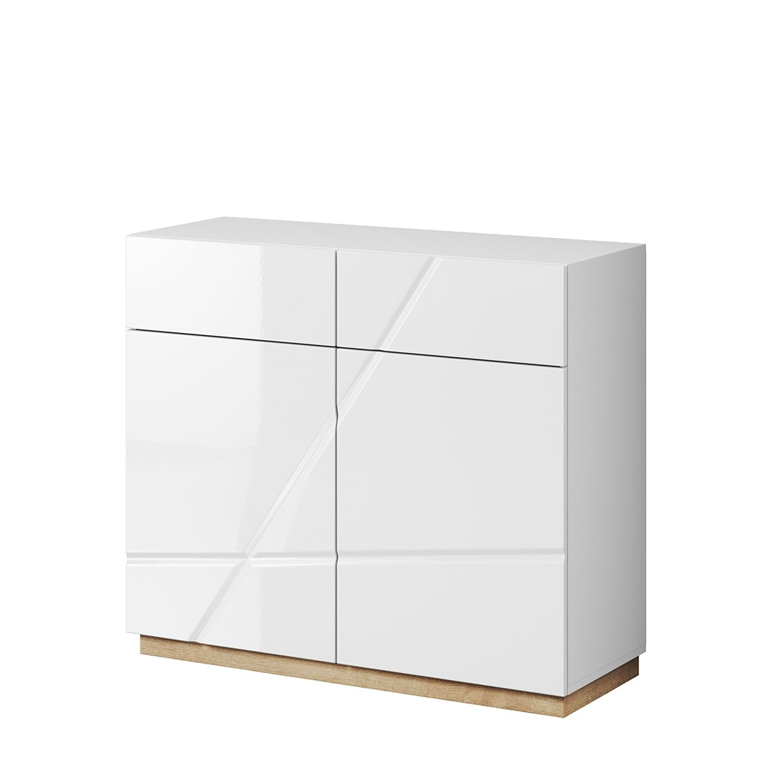 - 1 Commode en bois avec 2 portes et 2 tiroirs Futura 15 Blanc / Chêne Riviera, largeur : 100 cm, profondeur : 41 cm, hauteur : 91 m, poids : 43 kg