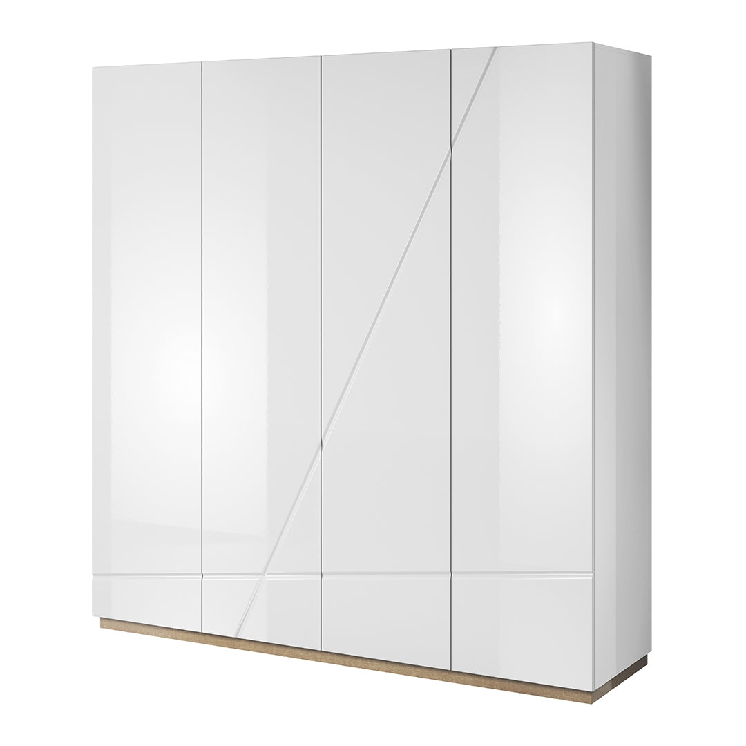 - 1 Armoire 4 portes Futura 11 Blanc / Chêne Riviera, largeur : 200 cm, profondeur : 60 cm, hauteur : 216 cm, poids : 170 kg