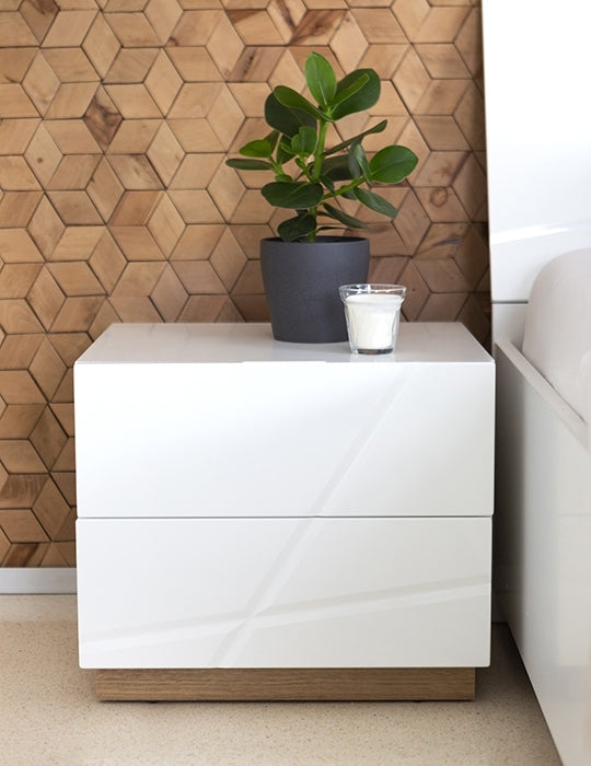 - 2 Chevets bois clair 2 tiroirs Futura 14 Blanc Mat / Chêne Riviera, largeur : 49 cm, profondeur : 41 cm, hauteur : 42 cm, poids : 17 kg