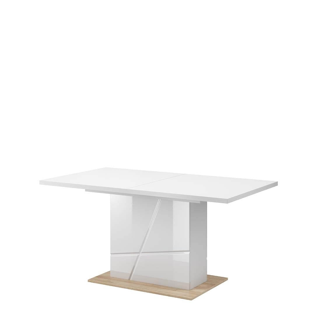- 1 table extensible Futura 10 Blanc/Chêne Riviera : longueur 160-200 cm, largeur : 90 cm, hauteur : 79 cm, poids : 118 kg