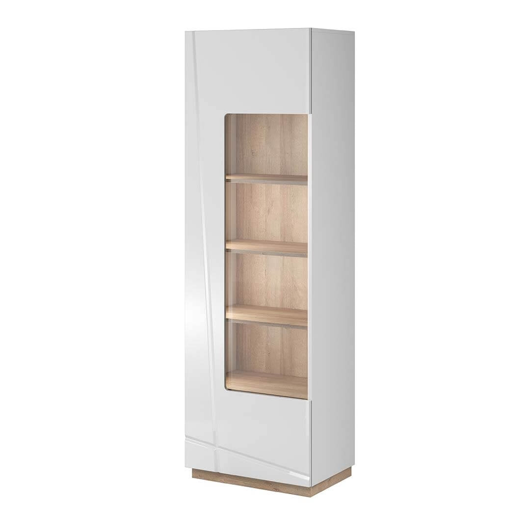 - 1 Vitrine en bois, avec 1 porte et LED incluses, Futura 02 Small Blanc / Chêne Riviera : largeur : 60 cm, profondeur : 41 cm, hauteur : 191 cm, poids : 53 kg