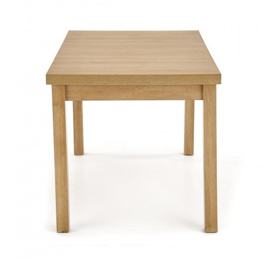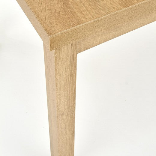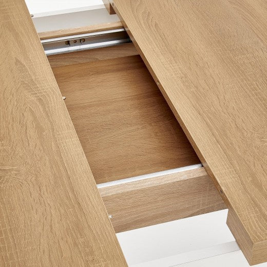 Ensemble table à rallonges en aggloméré et MDF Tiago 2 Chêne Riviera + 4 chaises rembourrées Toledo 2 Beige / Chêne, L140-220xl80xH76 cm